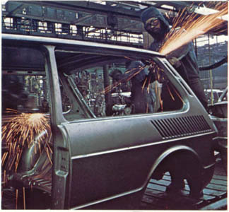 primeiras carroçarias de Brasília sendo fabricada em 1973.