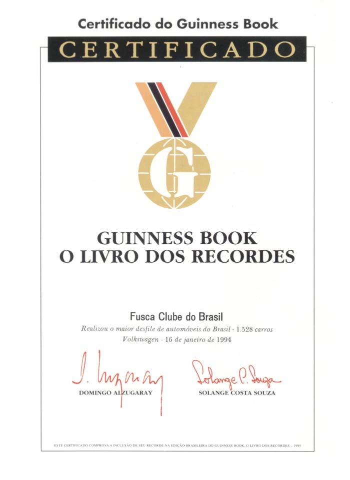 Foto 18: Reprodução do certificado do primeiro recorde registrado no Guinness.
